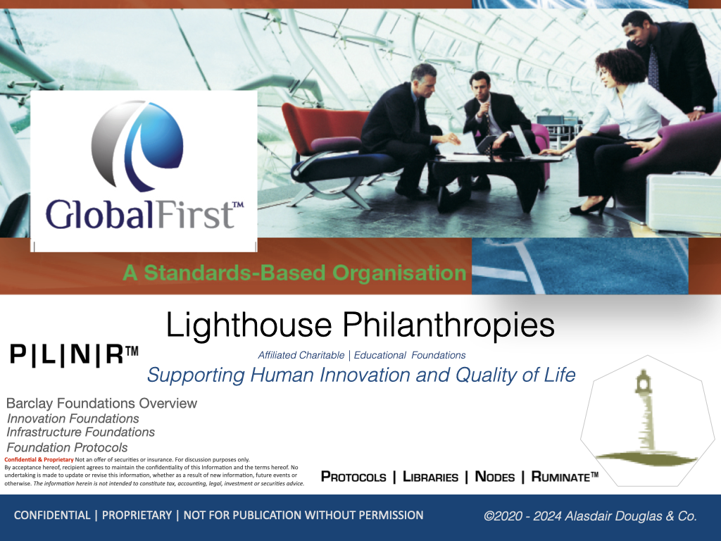 Lighthouse Philanthropies is a brand adopted by the various non-profit (Barclay) foundations which support advanced machine learning and other forms of digital intelligence (aka "AI"), new business frameworks, DX-Digital Transformation, Digital Twins and integration with legacy business, regulatory and governance paradigms.