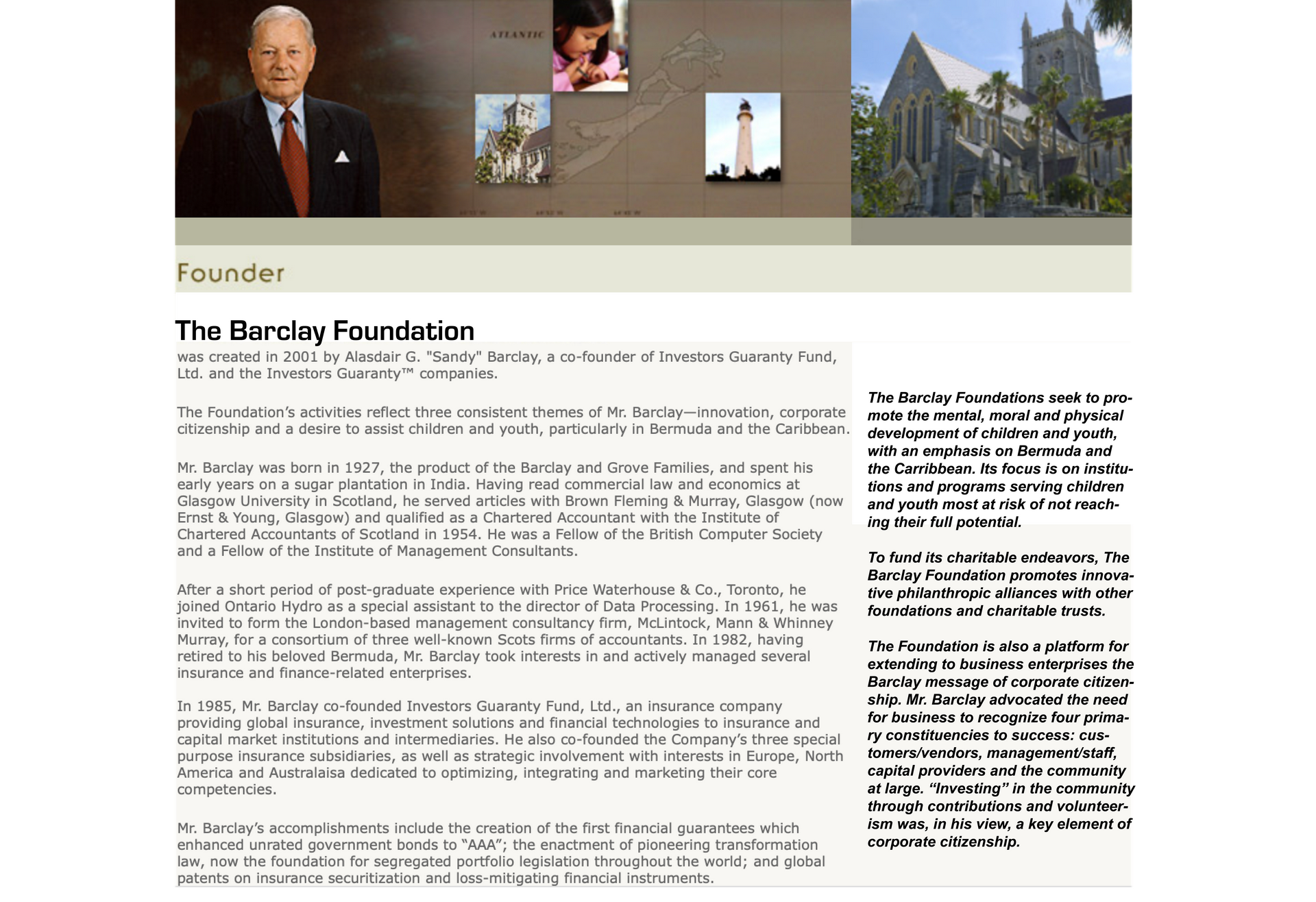 His personal experience with a poorly structured inheritance was a primary motivator in the development of a diversified and continuing approach to wealth creation and charitable activities. As a result, The Barclay Foundation and its affiliated Foundation were founded to support and educate disadvantaged children, located primarily in Bermuda and the Caribbean.